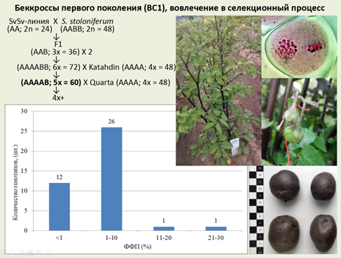 – Нами был разработан способ интрогрессии в геном культурного картофеля ценных генов от S. stoloniferum, позволяющий за короткий период времени и при минимальных затратах получать селекционный материал, обладающий мужской фертильностью и несущий ценные гены устойчивости к фитофторозу и Y-вирусу от образцов дикого вида. Полученный селекционный материал на основе межвидовых гибридов S. stoloniferum был передан в лабораторию исходного материала РУП «Научно-практический центр НАН Беларуси по картофелеводству и плодоовощеводству» для создания новых высокоустойчивых сортов картофеля.